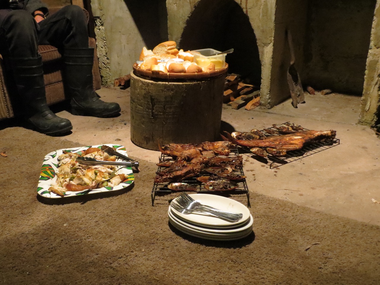 Zurück am Haus wird das Essen vorbereitet, geräucherter Snapper (Fisch) und geräucherte Miesmuscheln, einfach genial! Dazu ein Rohfischsalat und Brot.