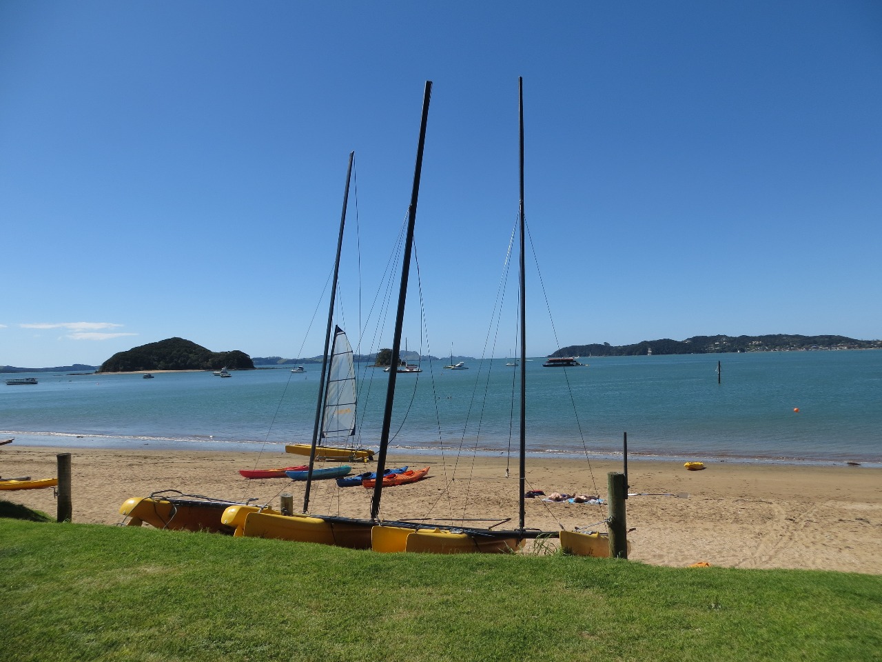 Nach einem kreativen Lunch (dem Essen vom Vorabend) geht es dann auf nach Paihia, aber nicht ohne mit Steve über seine Konditionen zu diskutieren; er windet sich aber gut aus allem heraus. Letztlich lassen wir ihm $24 da und verduften nach Paihia… Freiheit!